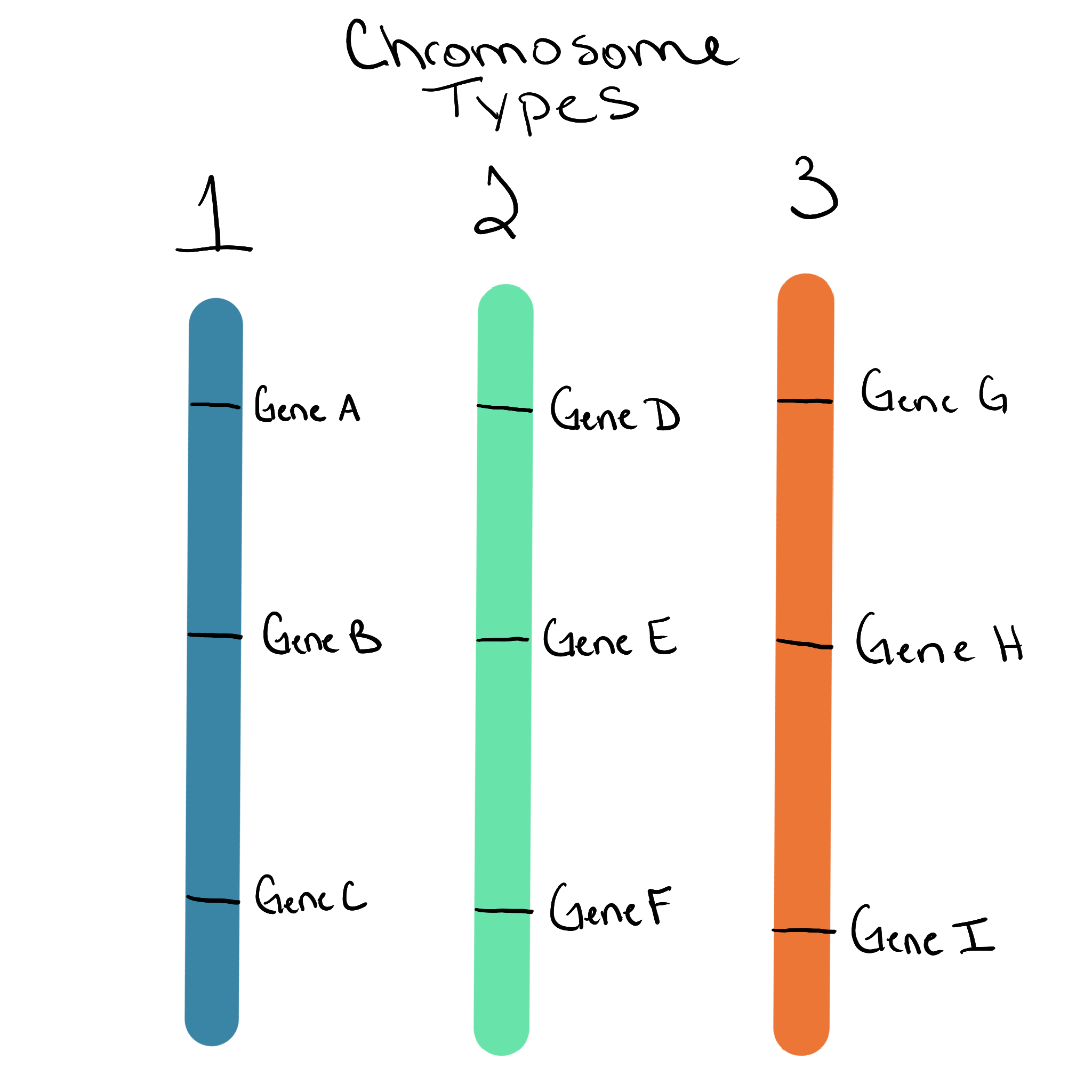 Figure 2. Three chromosome types, each with a unique set of genes.