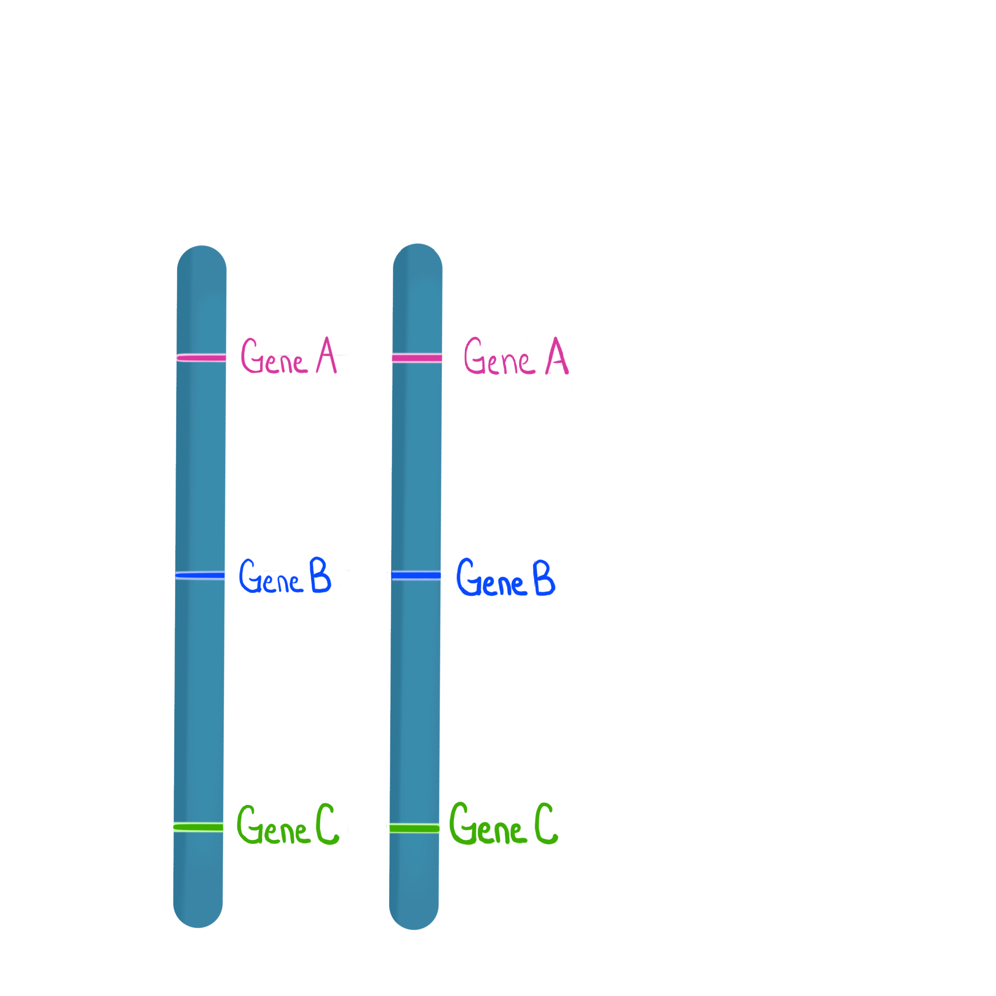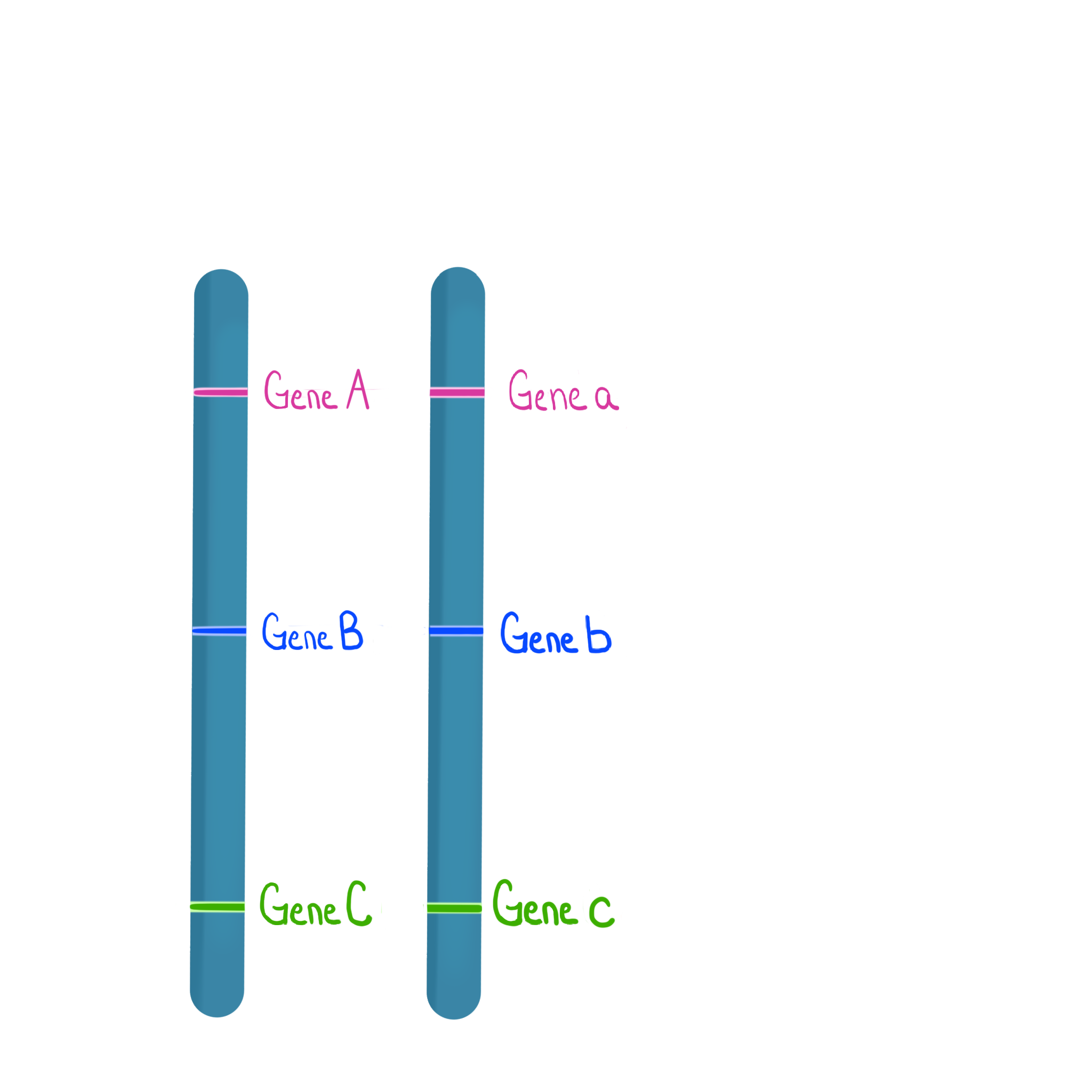 In the image below the letter case (e.g. A vs a) represents the allele. These homologs carry different alleles for Gene A, B, and C.